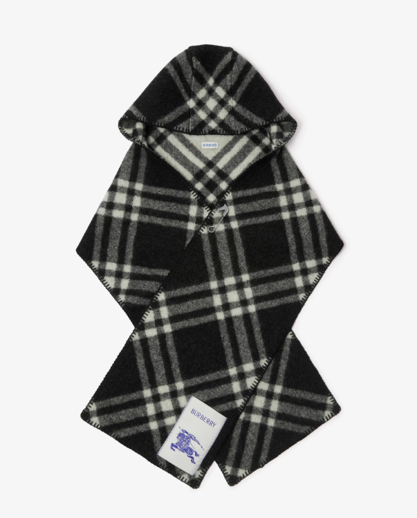 Check Wool Hooded Scarf